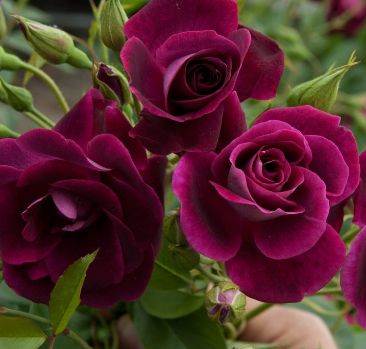 Божественно красивая роза глубокого яркого оттенка, будто бы кто-то небрежным движением пролил на лепестки смесь черничного и сливового варенья. Выглядит это настолько обворожительно и аппетитно. Самое удивительное то, что роза не теряет этот уникальный оттенок даже при воздействии солнца или осадков.
